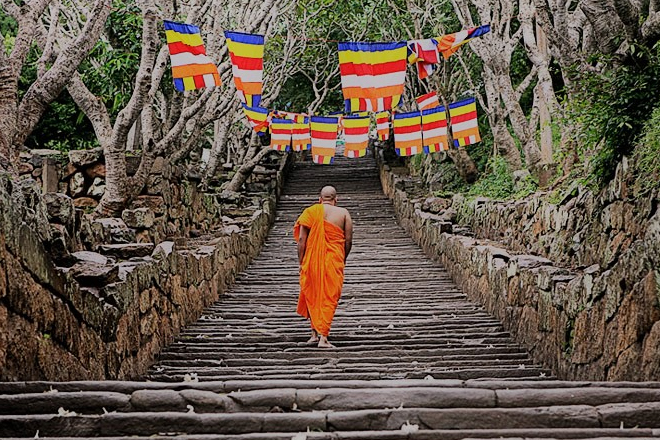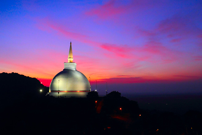 Another place of great historic interest is Mihintale rock, located in a small town with the same name, about 12 km east of Anuradhapura. It is surrounded by jungle, rock boulders around the neighbouring mountainous area and caves. Mihintaleis believed to be the site where Buddhism was first introduced to Sri Lanka. Ancient King Tissa was hunting a stag when he was approached by Mahinda, an enlightened Buddhist monk and the son of the Indian King Asoka, who was atop the Minintalerock. He discouraged the King from continuing with his hunt and the King who was a wise person and worthy disciple promptly converted to Buddhism. In June every year, on the day of the Full moon (Posonpoya) Buddhists travel from all over the island to Mihintalein pilgrimage. Even if not during the festival in June, Mihintale is an interesting place to visit.